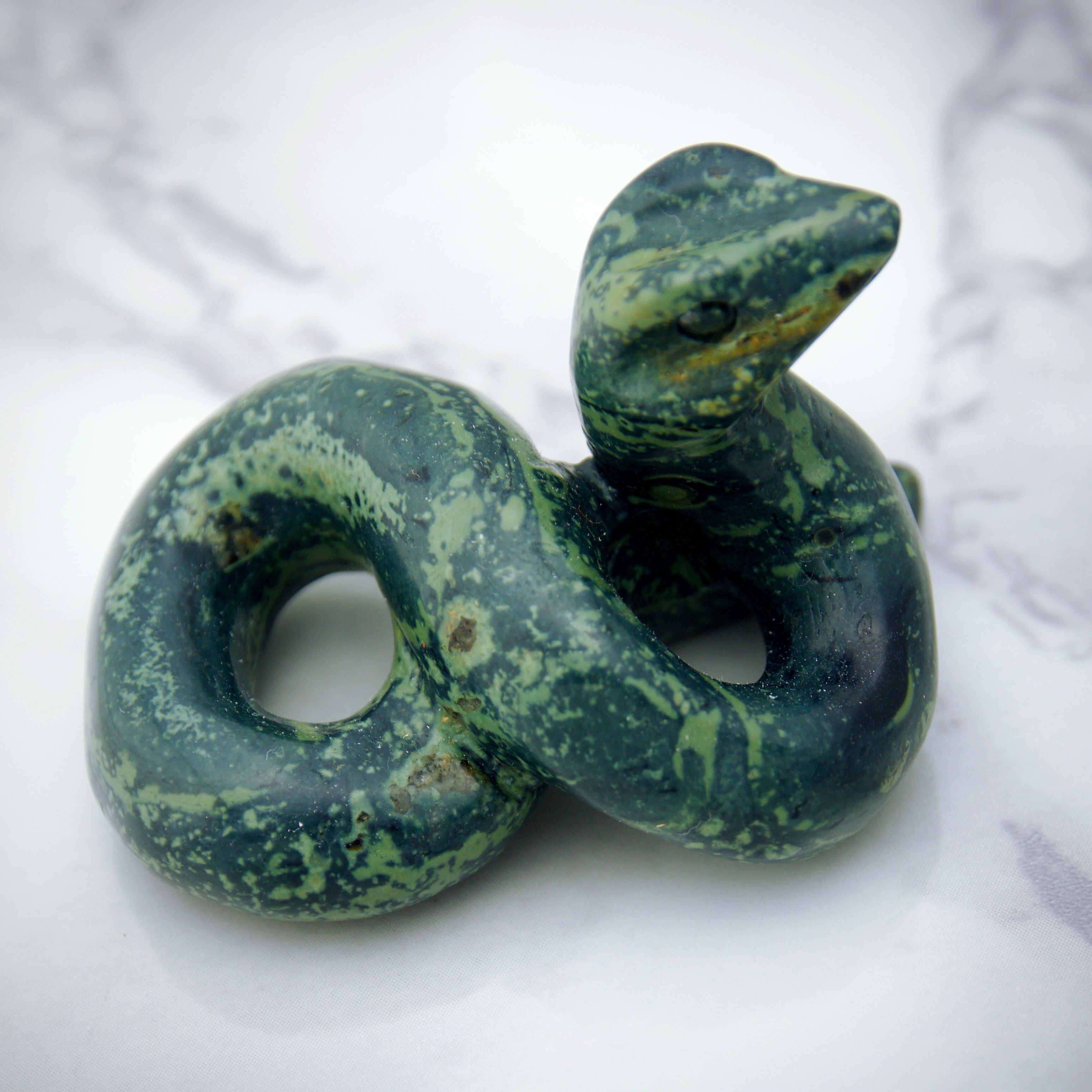 蛇の形に手彫りで丁寧に仕上げた宝石彫刻✨